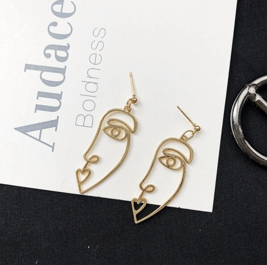Add a little art to your ears, with our must-have Picasso Face Earrings. Available in 18k Gold or Silver, these lovely drop earrings definitely make a statement.